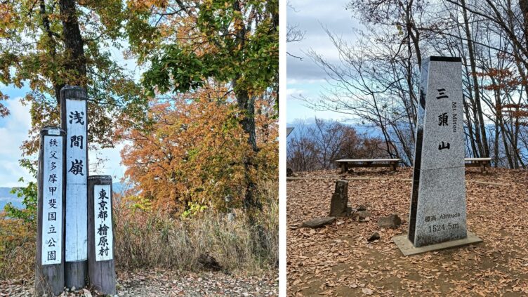 都民の森のお店「とちの実」で売っていた浅間嶺と三頭山の山バッジ